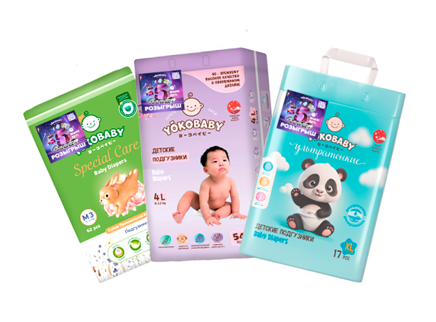 В акции участвуют следующая продукция торговой марки YOKOBABY: подгузники и трусики Yokobaby, подгузники и трусики супер премиум линейки Yokobaby Special Care и подгузники и трусики ультратонкой линейки Yokobaby Ultrathin всех размеров и всех форматов в упаковке с ПРОМО стикером со словом “РОЗЫГРЫШ”. Полный список продукции можно найти на нашем сайте.