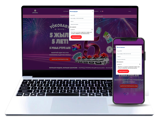 Зарегистрируй промо-код на сайте yokobaby-promo.kg и сохрани скретч карту до розыгрыша!